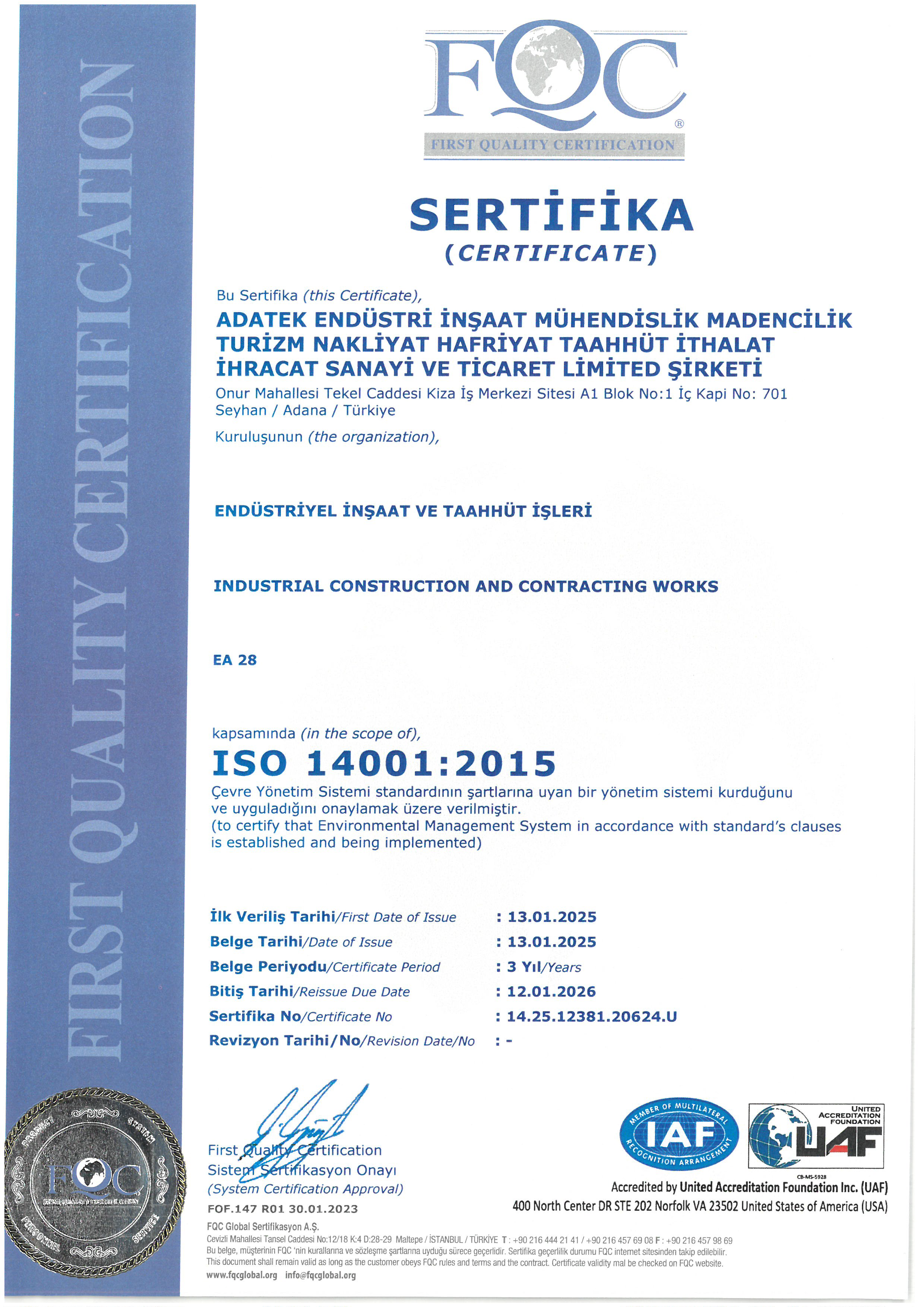 | ISO 9001:2015 | EA 28 | ISO 9001 Kalite Yönetim Sistemi, müşteri beklentileri, ihtiyaçları ve mevzuat şartlarını karşılama yolu ile müşteri memnuniyetinin artırılmasını öngören dünyaca kabul görmüş bir kalite yönetimi sistemi biçimidir. |